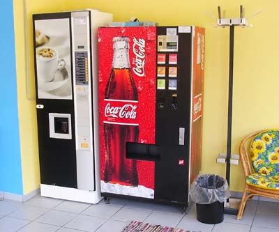 Neben dem Kaffee- und Snackangebot steht auch ein Automat mit gekühlten